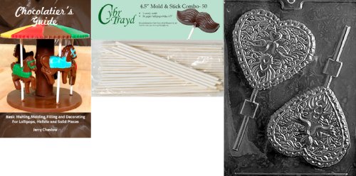 Cybrtrayd 'Large Heart with Doves Lolly' Valentine Chocolate Candy Mold with 50 4.5-Inch Lollipop Sticks and Chocolatier's Guide