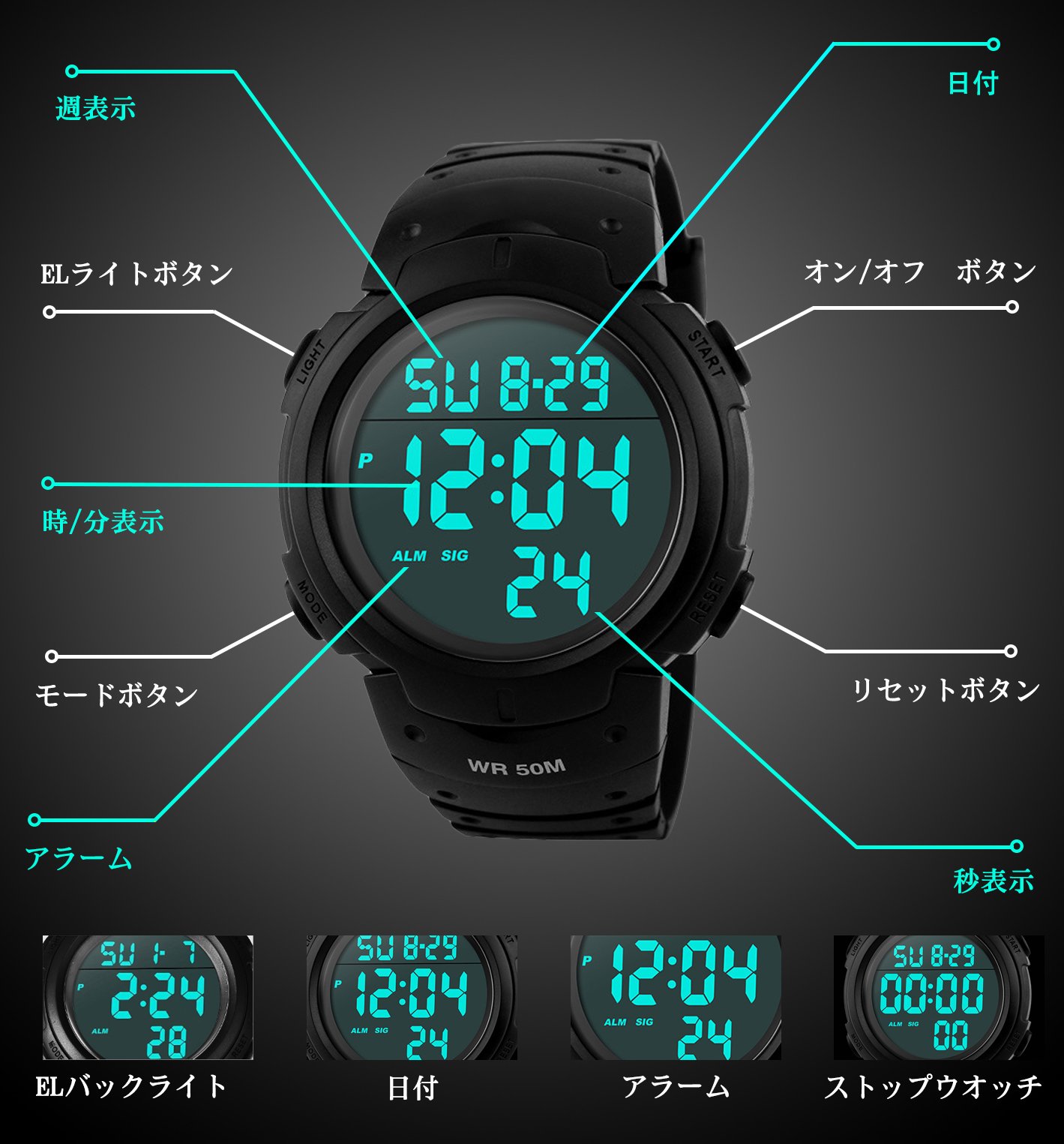 EL backlight (dark place and time can be confirmed in place)