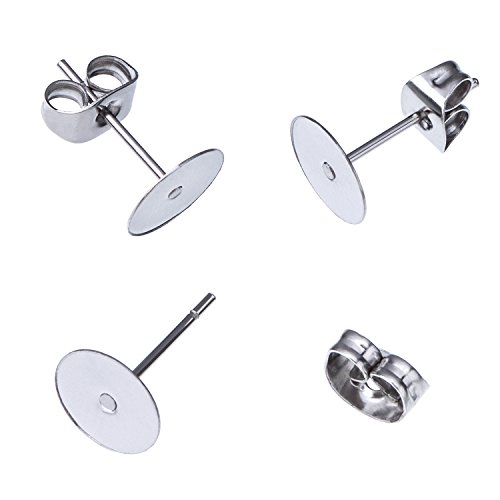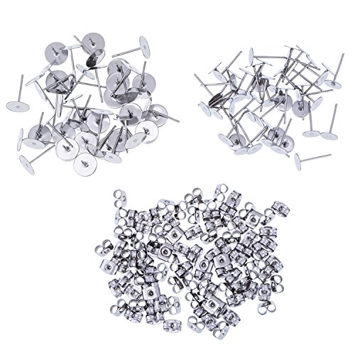 Outus 100 Pieces Stainless Steel Earrings Posts Flat Pad (2 Size) with 100 Pieces Earring Backs for Earring Making Findings, Total 200 Pieces