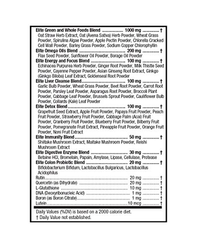 • 1,000 MG of Green Foods: Elite Man Multivitamins contain wheat grass, spirulina algae, broken cell wall chlorella, barley grass powder, oat grass, and more.