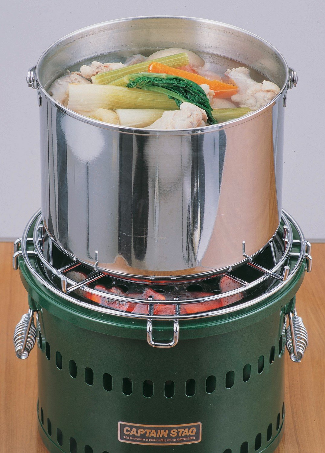 Put water in the bottom of the stove, the fuel such as charcoal improves with rising air current caused by evaporation of water.