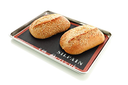 Studio : Silpat Publisher : Silpat Binding : Kitchen Product Description This Silpain (Silpat for bread) is a must when making dough and baking bread rolls, buns and more. This 11-5/8 x 16-1/2-inch mat will turn your pan into a non-stick surface. The mat is a flexible, non-stick, easy-to-use liner that has a perforated texture covered with food grade silicone and can be used thousands of times. It is ideal for freezing and for baking bread of all shapes and sizes, which are not required to be calibrated, as well as for the partial baking of tarts. The mat must be used flat and placed on a tray (we recommend a perforated tray as this provides better heat circulation). The mat is easily cleaned using a soft sponge under running water. Nothing sticks to Silpat, so it will save you a lot of time cleaning as there in no more sticky mess on your pans! Silpat never needs greasing, which saves both time and money. Use Silpat instead for any baking recipe that calls for parchment paper. This saves money and creates less waste for our environment. Life of product varies-lasts 2,000 to 3,000 uses depending on use and care. Silpat products conform to US regulations on food grade silicone and are FDA, NSF and Kosher certified. Can be used at temperatures varying from -40 Degree to 250 Degree (-40 Degree to 482 Degree). Made in France. Silpat is known around the world as the original non-stick baking liner. Silpat liners are made of fiberglass and food grade silicone and are completely food safe. Nothing sticks to Silpat! Sasa Demarle Inc. was founded in 1965 by M. Guy Demarle in Northern France. Mr. Demarle was an experienced baker who was seeking a better way to make baguette bread with forms using non-stick silicone coatings. He went on to invent the first non-stick baguette baking trays or filets, as they are known in France. A few years later, Mr. Demarle also went on to invent and create the original Silpat. Since then, we continue to strive for improvements in non-stick products for the baking, patisserie and food-service industries. 0