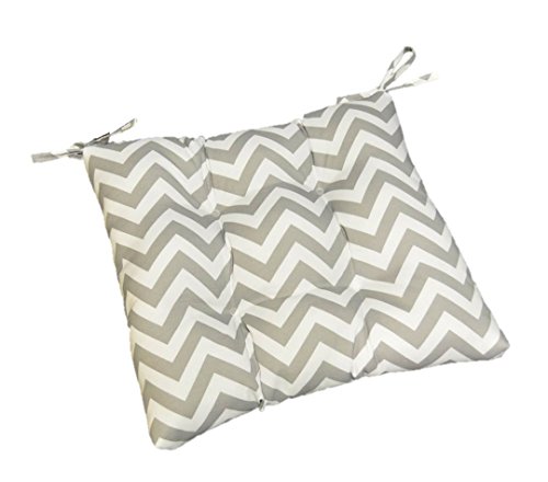 -. Title : Gray / Grey and White Chevron / Zig Zag Universal Tufted Seat Cushion with Ties for Dining Patio Chair - Choose Size