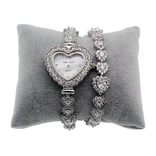 -. Feature : ♥Hermosa Watch Sterling Silver Luxury Crystal Cubic Zircon White Topaz / ♥High-class Clock Movement Imported From Janpan / ♥30m Water-proof / ♥Stainless Steel Band With Jewelry Clasp,Shape:Heart / ♥Free Shipping Accept Return At Anytime,