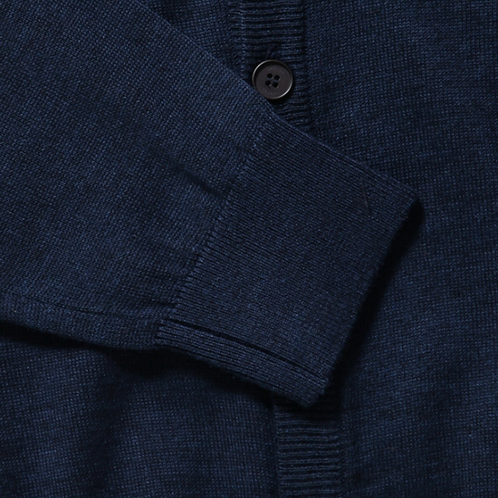 - 어깨의 다른 니트 조직을 적용한 남성 가디건.
