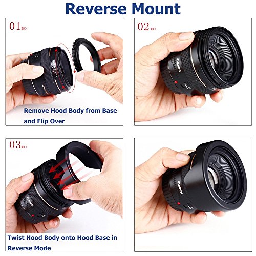 Reverse the lens hood while not shooting to protect your expensive lens and also easily to carry it in your camera bag. A great value added than those normal lens hood