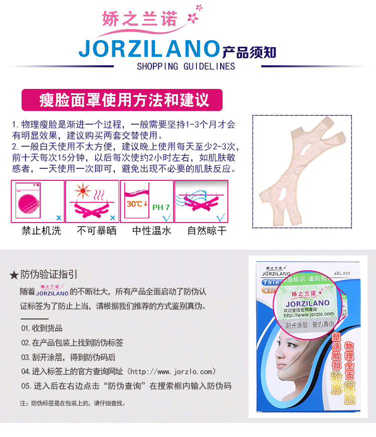 JORZILANO/娇之兰诺睡眠瘦脸神器透气V脸绷带塑脸带防脸下垂面罩