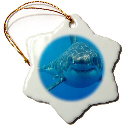 3dRose orn_108355_1 Underwater Great White Shark-Snowflake Ornament, 3-Inch, Porcelain