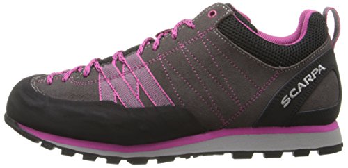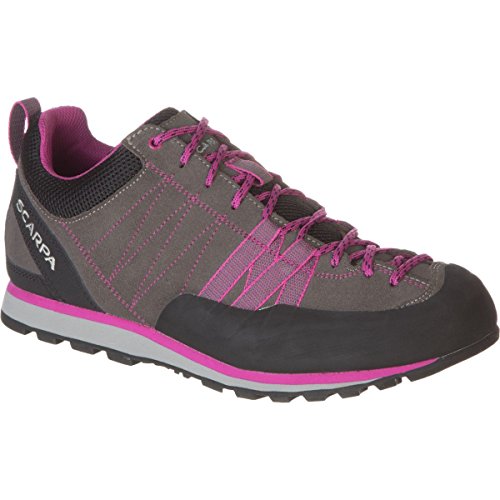 Studio : Scarpa Footwear Publisher : Scarpa Footwear Binding : Shoes Product Description FEATURES of the Scarpa Women's Crux Shoe Forefoot webbing with Kevlar secures the forefoot for climbing precision Rubber toe rand protects your foot on the trail Vibram Vertical Approach sole with sticky rubber for long lasting grip Lacing toe the toe allows for a precise fit SPECIFICATIONS of the Scarpa Women's Crux Shoe Upper: 1.8mm Suede, Recycled Polyester Airmesh Lining: Recycled Polyester Insole: Recycled Polypropylene Midsole: Vertical - Dual-Density EVA Sole: Vibram Vertical Approach Last: BN Weight: 1/2 pair: 10.2 oz / 289 g This product can only be shipped within the United States. Please don't hate us. 0