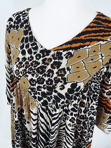 Ladies ブランド- カラーベージュ・茶・黒 メール便不可 コンディション★★★ 素材コットン 表記サイズM スタッフコメント裏地なし。若干のスケ感あり。両サイド裾付近に糸の出ダメージ感あり。 実寸サイズ 着丈 101 cm 身幅 63 cm 肩幅 39 cm 袖丈 29 cm ※ウエスト・ヒップ以外は平置き採寸