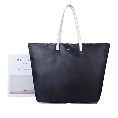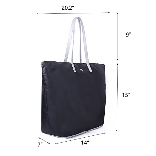 This lightweight tote with vegan saffiano leather accents ingeniously packs into its own hard-shell base with zip-around closure.