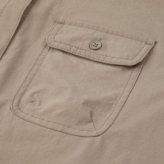 - 가슴 포켓과 양 사이드 포켓을 적용하여 간단한 소지품 보관이 용이한