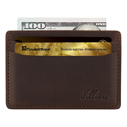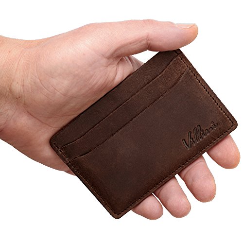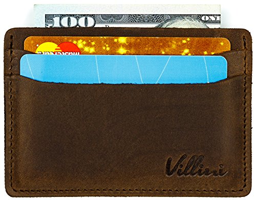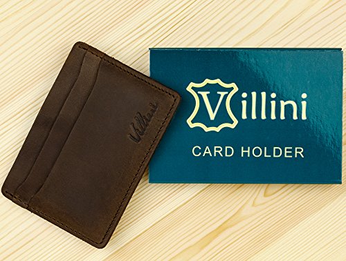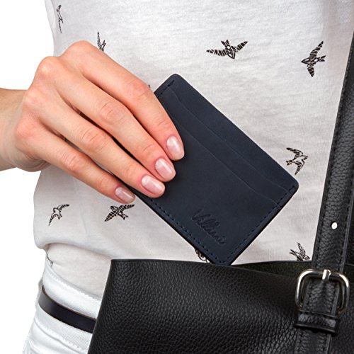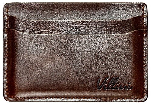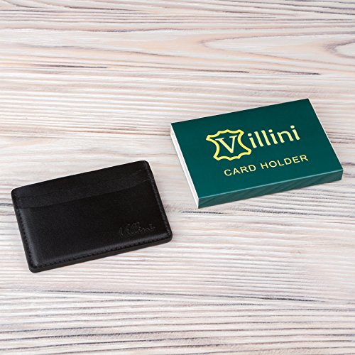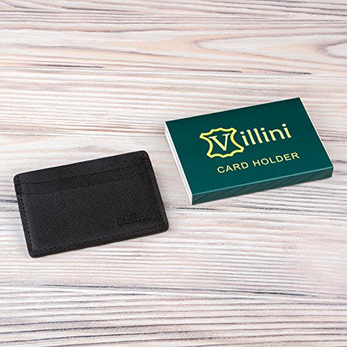 | Villini Leather Slim Credit Card Holder - Front Pocket Wallet - Minimalist Card Case |