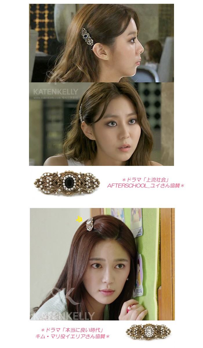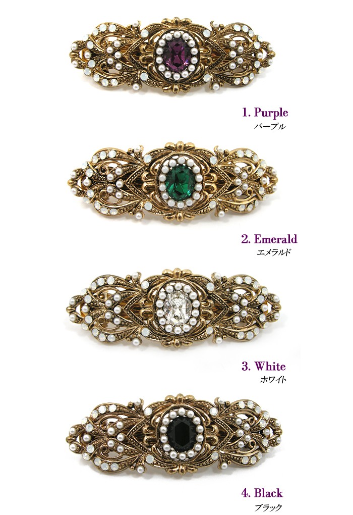 ***アンティーク調のデザインにパールとホワイトオパールクリスタルの装飾が綺麗☆それぞれのカラークリスタルによって違うストーリーを想わせるヴィンテージ風ヘアピン(バレッタ)です****ドラマ「最高です!スンシンちゃん」IUさん協賛☆カラー:パープル*ドラマ「上流社会」AFTERSCHOOLユイさん協賛☆カラー:ブラック*ドラマ「本当に良い時代」イエリアさん協賛☆カラー:ホワイト【サイズ】7×2.5cm(バレッタ5cm)【素材】合金、ブロンズアンティークメッキ、クリスタル、コーティング真珠、バレッタ【メーカー】KATENKELLY※PC環境により色味が多少異なって見える場合がございます。予めご了承下さいませ。