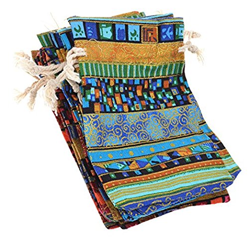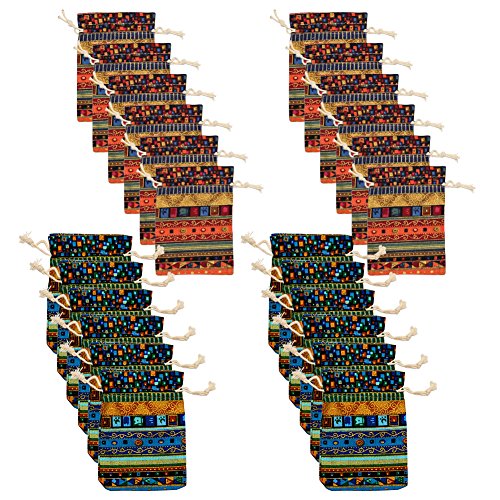 Allure Maek Pack of 24pcs 5.5 x 4 Inch Ethnic Style Double Drawstring Cotton Linen Jute Cloth Sack Muslin Bags Jewelry Pouch Sachet Souvenir Reusable Bags Gift Bag