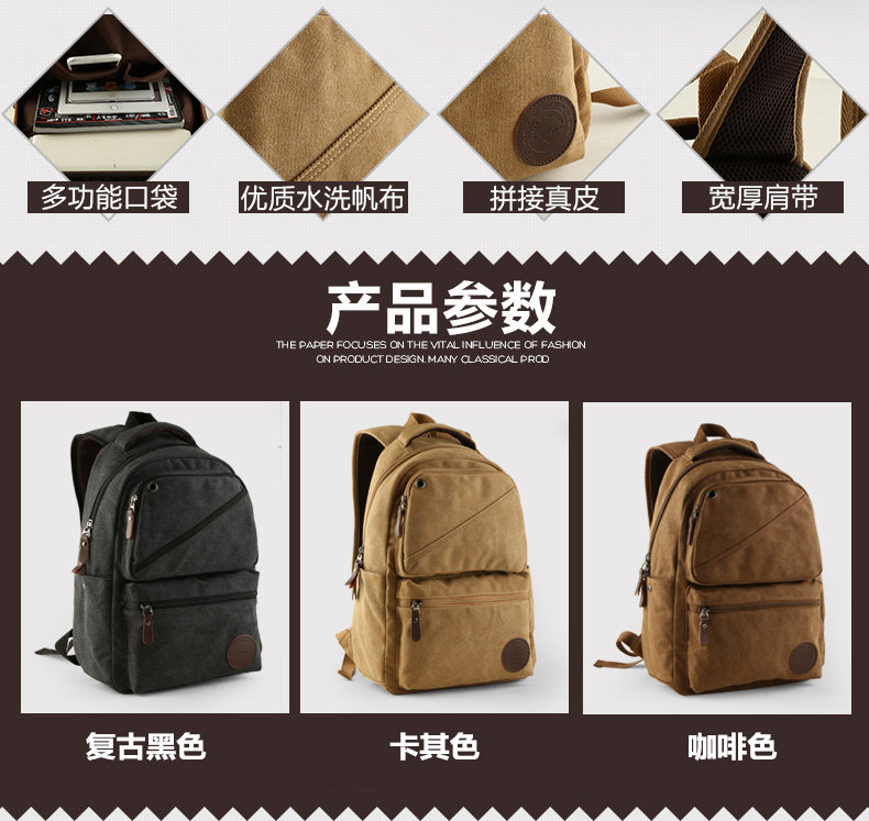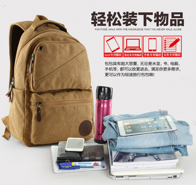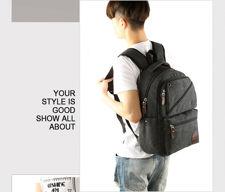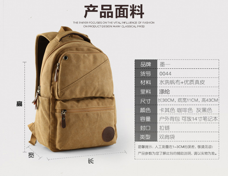 墨一韩版潮流帆布包休闲男包学生书包双肩包户外背包旅行包电脑包