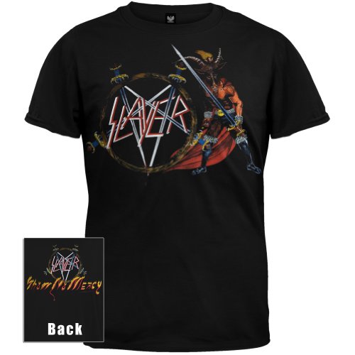 Studio : Slayer Publisher : Slayer Product Description The devil Baphomet stands ready for battle in the cover art from Slayer's classic debut album Show No Mercy, featured in a wicked full-color print across the front of this black, 100% cotton t-shirt. Hellish design combines with heavy construction for a badass tee no true Slayer fan should be without. 0