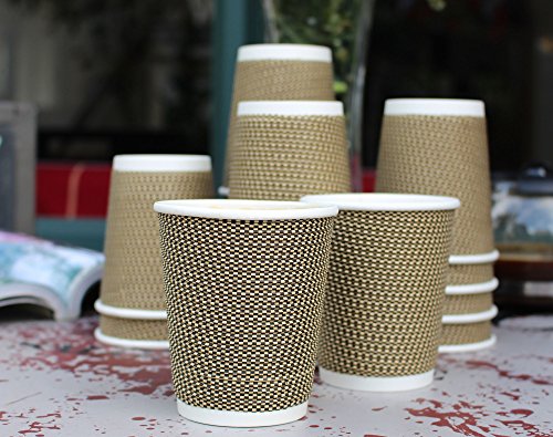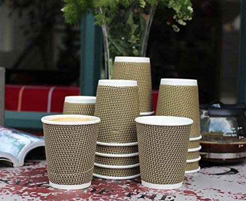 40 Paper Hot Coffee Cup, Disposable Hot Cup 8 Oz, Rippled with Groove Best for Insulated,no Sleeve Needed.