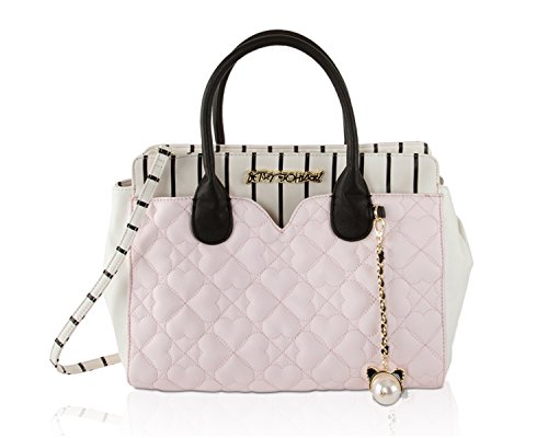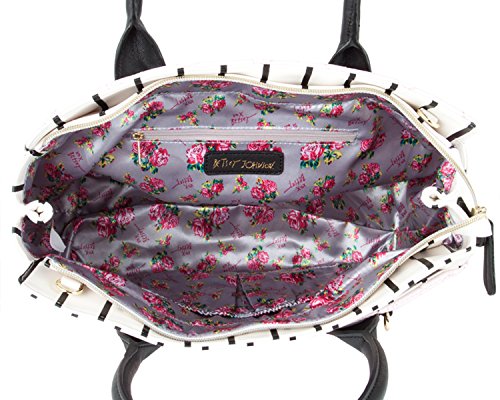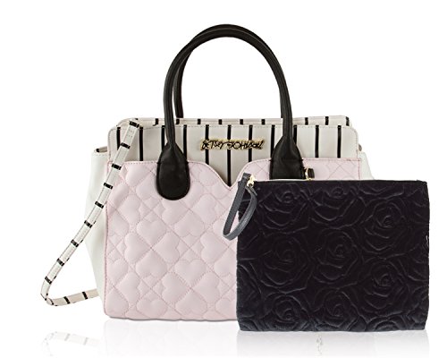 Two bags are better than one Betsey Johnson Pouch Dip Bag has plenty of space for everything and plenty of style for anything. Exterior Features Front heart shaped slip pocket with zippered Wristlet pouch that ensures stylish flair, Zip top satchel ,Double Handles 5 Drop, Removable shoulder strap 23ö Drop, Fully Lined printed Interior with Wall zipper pocket and 2 Slip Pockets. This carryall offers versatility for an everyday wear and will keep you organized with separate zippered pouch to carry the essentials.Feature