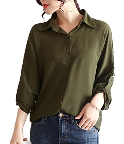 -. Feature : 袖はロールアップできるので、春夏秋冬、オールシーズン着まわせる万能トップスです。コーディネートしやすい定番カラーで、着回し力はバツグン! 長めの着丈なのでスタイリングもしやすく、薄手の素材なのでボトムスインしやすいのも特徴。 / さらてろ生地が心地いい、プルオーバータイプのブラウスです。スキッパー風のデザインで、抜き襟もしやすいのも魅力。きれいめ普段着としてはもちろん、通勤やオフィス、就活でのスーツインナーブラウスとしても優秀です。かっちりしすぎないシルエットで、女性らしい魅力をUPしてくれる1枚です。 / カラー:オフホワイト、モスグリーン メイン素材:ポリエステル セット内容:ブラウス サイズ:S、M、L、XL(※サイズは商品画像、商品説明に記載しております。海外製の為、日本の一般的なサイズ感よりもやや小さめに作られております。ご購入いただく際は、サイズ表をご確認くださいませ。) / 飽きのこないブラウスは、お仕事やビジネス、通勤や営業などのフォーマルな場面でも使えますが、ホームパーティーやお誕生日会などのカジュアルなお呼ばれにも、きれいめシャツとして着こなしできる、可愛いブラウスセレクト。礼服やスーツなどのフォーマルセットアップにも欠かせないアイテムは、春夏秋冬、季節を問わずにオールシーズンで活躍します。ストールやスカーフなどのファッション小物とも相性バツグン。足元は、ブーツやブーティはもちろん、ヒールやパンプスなどと合わせると、こなれ感がUPします。 / AngelMoon(エンジェルムーン)はブラウス、ワンピースをはじめ、チュニック・シャツ・カットソー・セーター・カーディガン・トレーナー・パーカー・キャミソール・タンクトップなどのアウターやインナー、タイトスカート・ミニスカート・ロングスカート・ワイドパンツ・ガウチョパンツ・スキニー・レギンス・サブリナパンツ・チノパンなどのボトムス、ウィッグ、ストール、スカーフ、バッグなどのファッション小物など、オールシーズン着られるものや、春、夏、秋、冬、の季節に合わせ、20代、30代、40代と年齢を問わずおしゃれを楽しんでいただける、トレンドを押さえたレディースファッションを取り揃えています。
