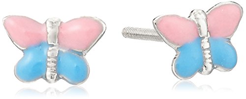 -. Title : Sterling Silver Children's Pink and Blue Butterfly Earrings
