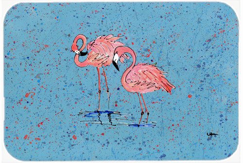 Caroline's Treasures Pink Flamingos on Blue Speckle Glass Cutting Board, Large, Multicolor