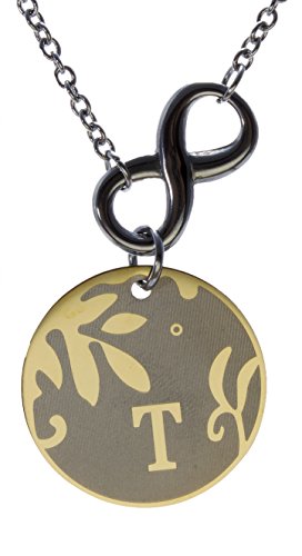 -. Feature : Infinity symbol with initial round stainless steel pendant necklace / Each Letter: A, B, C, D, E, G, H, J, L K, M, N, R, S & T with representative words engraved on the back / womens initial pendants Unique style alphabet necklace with special meanings / A fine stainless steel 20" chain included / The round pendant size is 1" diameter.