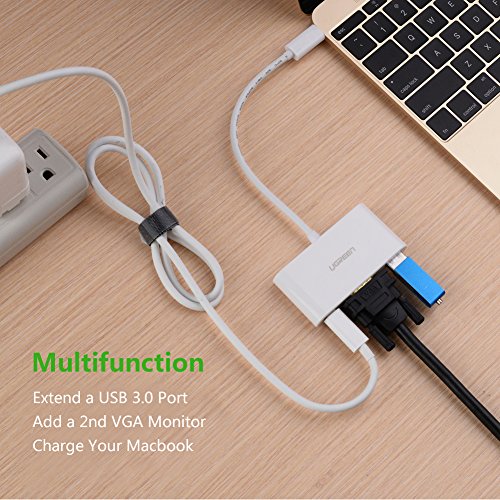 UGREEN USB C to VGA Multiport Adapter with USB Type C and USB 3.0 A Female Ports Support 1080P for Apple 12-inch New Macbook, Chromebook Pixel, Dell XPS 13