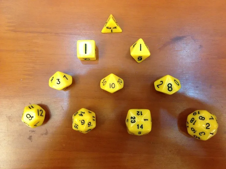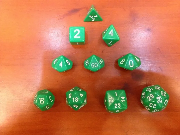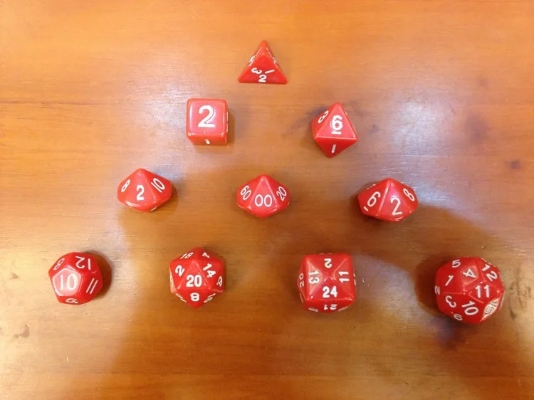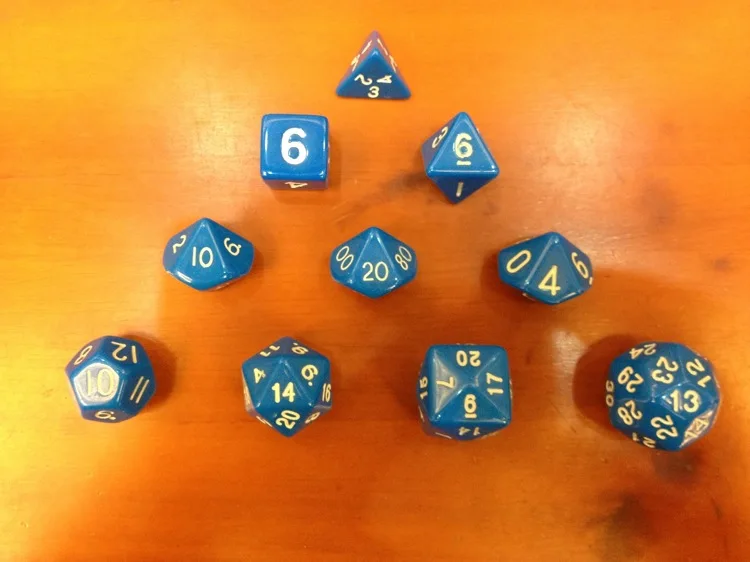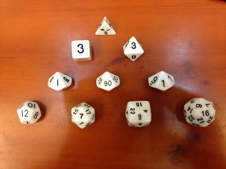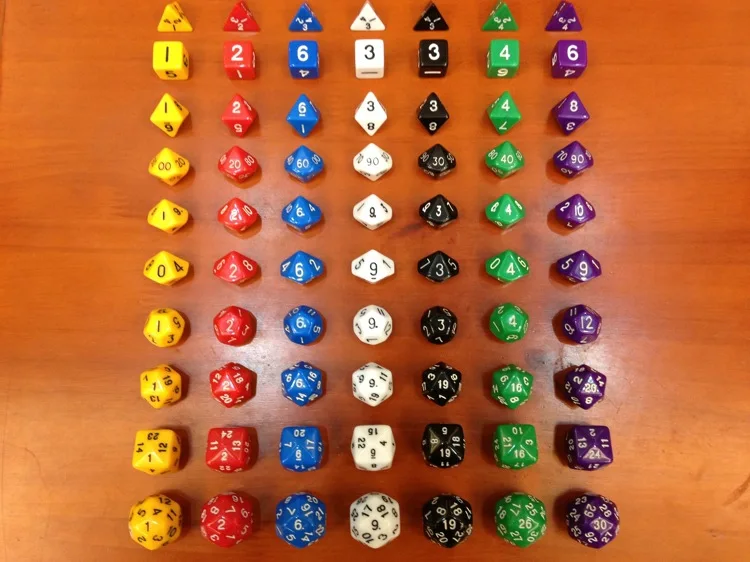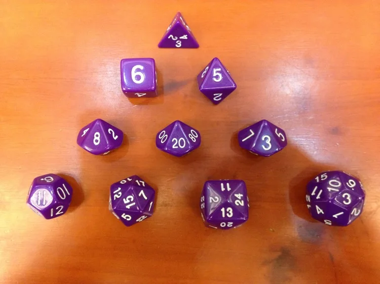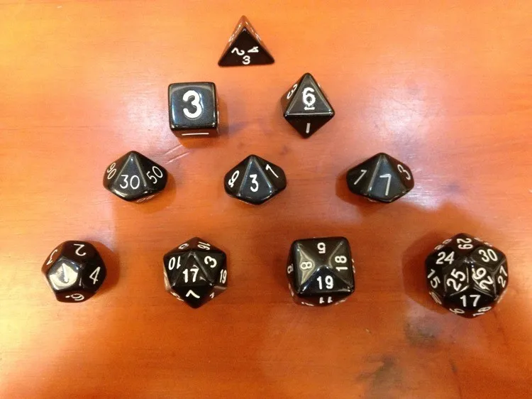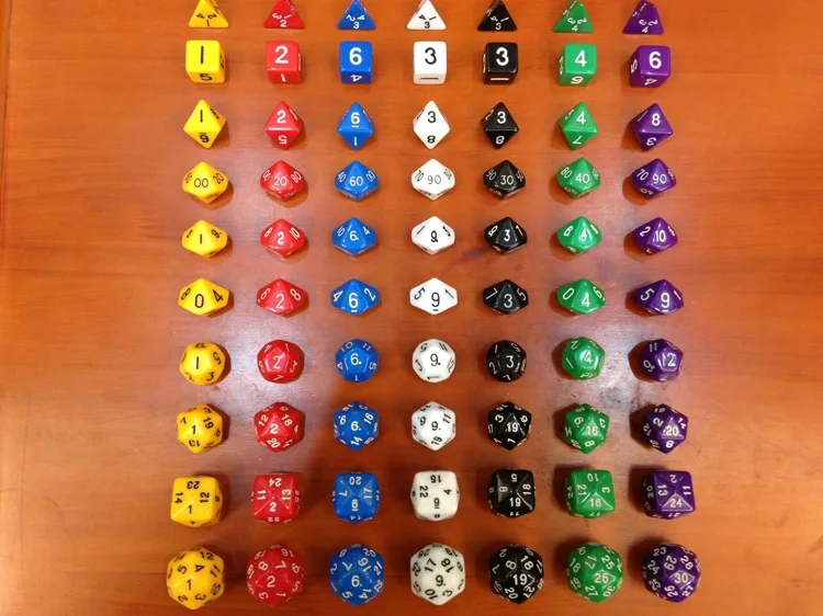 Faces:4+6+8+10(0-9)+10(1-10)+10(00-90)+12+20+24+30 Faces