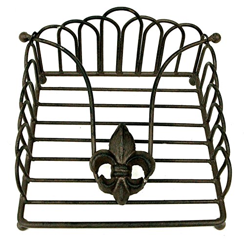 -. Title : Fleur de lis Square Napkin Holder Cast Iron Rustic Finish 8 Inches