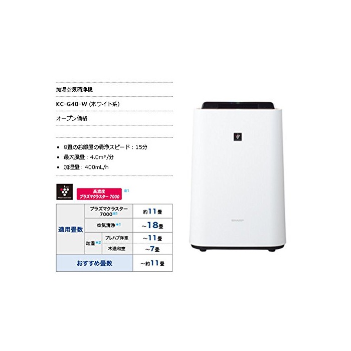 원본상품명: PM2.5加空機(空18まで/加11まで ホワイト系)SHARP 高濃度「プラズマクラスタ7000」搭載