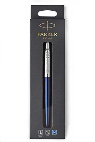 -. Binding : Office Product -. Brand : Parker -. Color : Royal Blue and Chrome -. EAN : 3501179532097 -. Feature : Streamlined style with clean lines for a fresh take on the iconic PARKER Jotter design / Stainless steel barrel with blue finish accented by high-shine trims and an arrowhead clip / Signature retractable design opens and closes with a satisfying click / Fitted with Quick flow ballpoint refill for optimal ink flow and a smooth writing experience; blue ink; medium tip; also accepts PARKER gel refills / Gift box not included -. Label : Newell Rubbermaid Office -. Manufacturer : Newell Rubbermaid Office -. Model : 1953209 -. MPN : 1953209 -. NumberOfItems : 1 -. PackageQuantity : 1 -. PartNumber : 1953209 -. ProductGroup : Office Product -. ProductTypeName : WRITING_INSTRUMENT -. Publisher : Newell Rubbermaid Office -. Studio : Newell Rubbermaid Office -. Title : Parker Jotter Royal Blue CT Ballpoint Pen, Blister pack