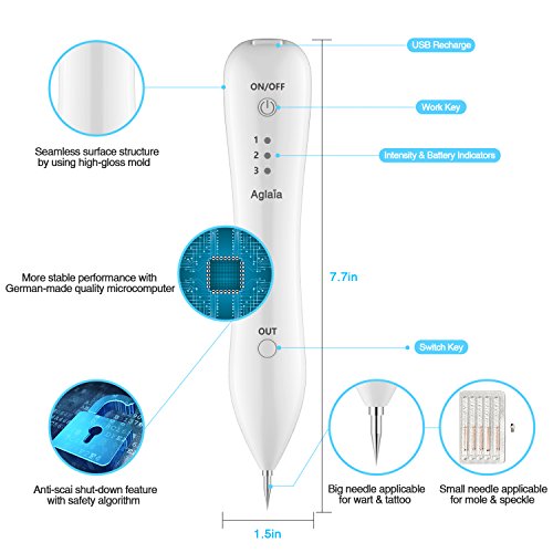 -. Title : Aglaia Mole Removal Pen, Mole Wart Skin Tags & Spots Removal Kit with Cover Film Cotton Swab, 3 Modes Microcomputer Anti-scar Feature