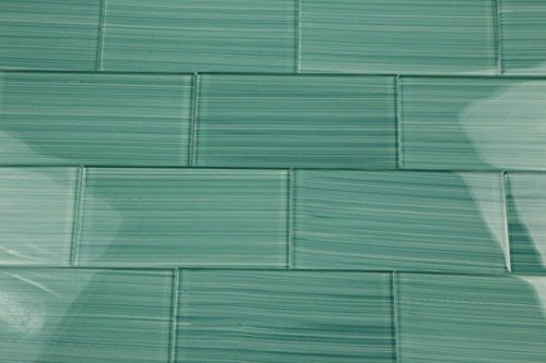 Medium Lauderdale Teal Glass Tile, hand painted and custom made perfect for bathrooms and kitchens, Sample