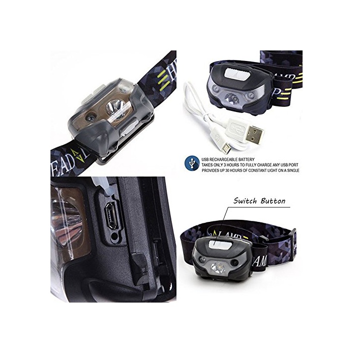 RICO Lighting LED헤드라이트 헤드 램프 5개 점등 모드 밝기168루멘 방수 경량 USB충전식 케이블 부속 캠프/낚시/하이킹 등 아웃도어 활동에 적용