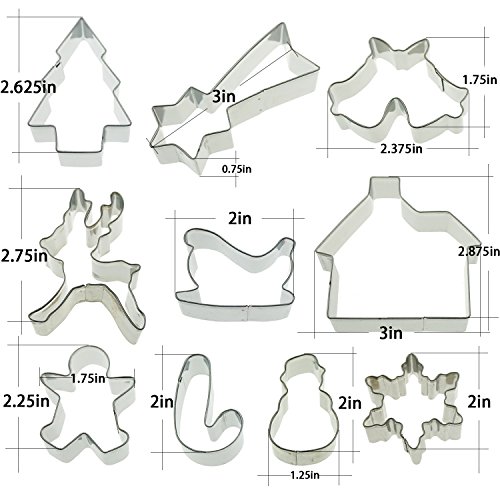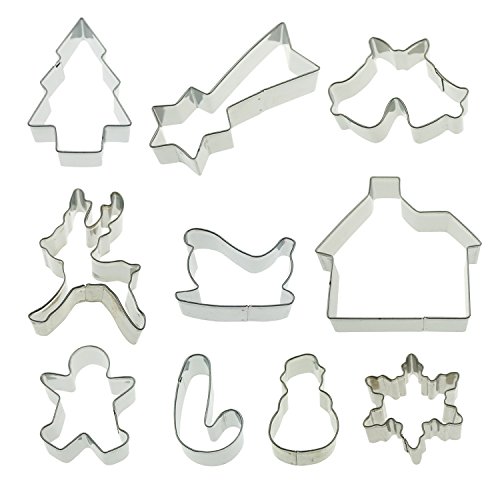 Christmas Cookie Cutter Set Snowflake Star Christmas Tree Gingerbread Man Sleigh Elk Snowman House Jingle Bells Cakes Cutters For Kids Party Tin Plated Steel Decoration Tools Set 10 Piece by SHXSTORE