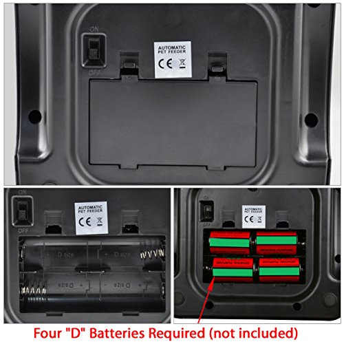 Specification: Capacity: 10.65L(about 4kg)/8.8lbs 45 cups(90 meals) Weight: about 4.8lbs Material: ABS plastic cement Power Supply: 4 x D size battery(not included) Dimension: 16.5 x 9.3 x 13.8"(LWH) Package Size: 10x10x14" Color: just as the pictures show Please Note: Pet Food Not Included Packing List: 1 x Pet Feeder 1 x Instruction 0 |