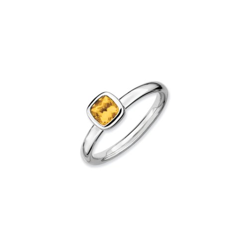 -. Title : Silver Stackable Cushion Cut Citrine Solitaire Ring