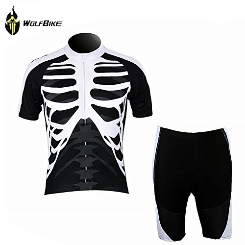 WOLFBIKE Men Cycling Jersey Comfortable Breathable Shirts Tops / 4D Cushion Padded Shorts Sportswear Breathable Quick Dry (Skeleton Suit, Small)