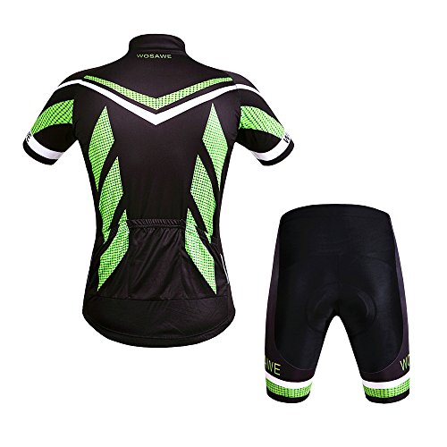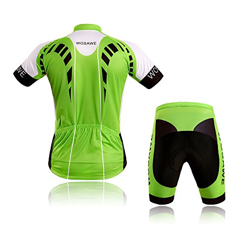 WOLFBIKE Men Cycling Jersey Bicycle Bike Cycle Short Sleeve Jersey Jacket Comfortable Breathable Shirts Tops, 4D Cushion Padded Shorts Tights Pants Sportswear Suit Set Breathable Quick Dry (Hulk, L)