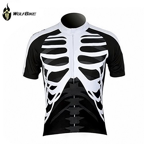 WOLFBIKE Men Cycling Jersey Comfortable Breathable Shirts Tops / 4D Cushion Padded Shorts Sportswear Breathable Quick Dry (Skeleton Jersey, Small)