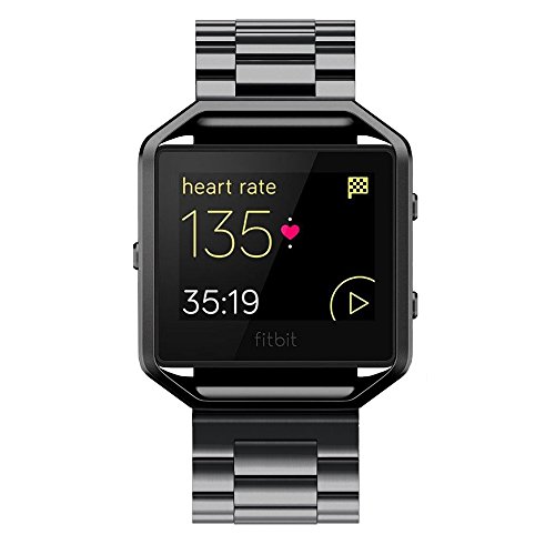 Simpeak Stainless Steel Metal Band Strap for Fitbit Blaze Smart Fitness Watch - Black