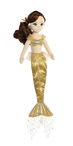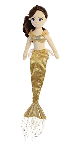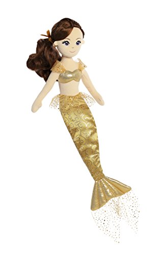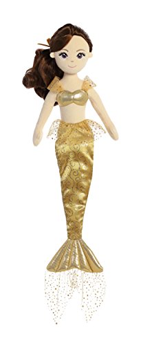 -. Feature : Measures approximately 18" / Shimmer and mylar fabrics are just the sparkle this mermaid needs to shine while on land / Beautifully embroidered facial features, with bright cheerful eyes / Her styled doll hair is tied back with a satin ribbon / Many wonderful friends can be found in the beautifully designed sea sparkles collection