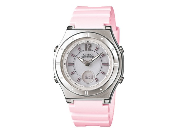 オン・オフを問わず気軽に使える女性用ソーラー電波時計です。電波受信機能は日本のほか、アメリカ・ヨーロッパ・中国の標準電波にも対応するマルチバンド6を採用。また、6時位置の液晶部分には曜日や日付表示のほか、ワールドタイムやタイマーなどの便利な機能を搭載しています。カジュアルな印象のプラスチックバンドにはピンクをカラーリングし、女性らしく仕上げました。プレゼントやギフトにもおすすめ。