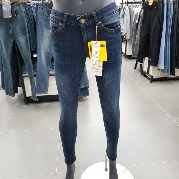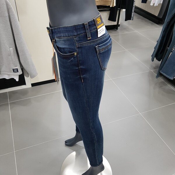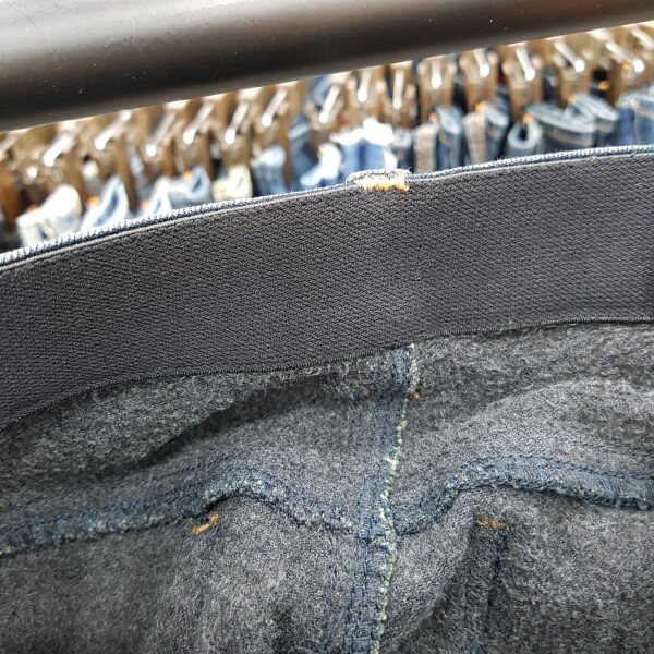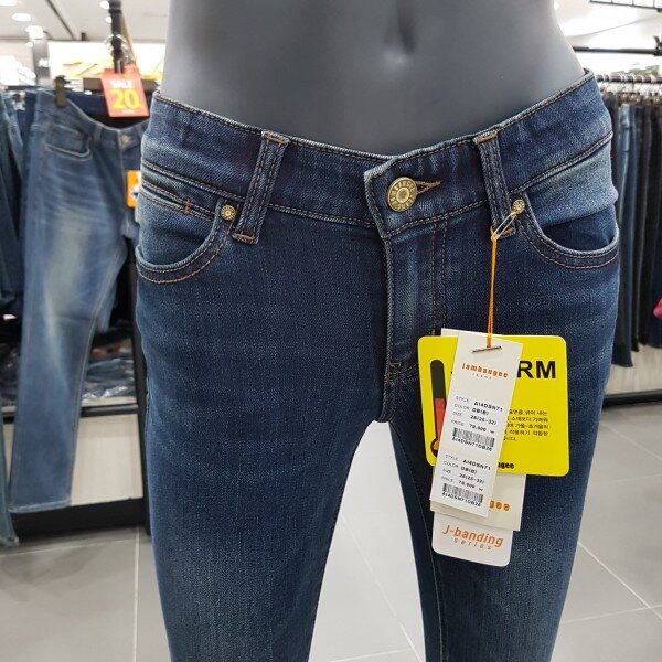 잠뱅이 여성 허리 밴딩 스타일 바이오스톤 터치워싱 겨울 기모 슬림핏 청바지 입니다.