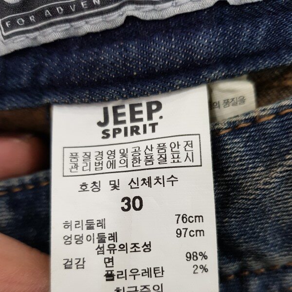Jeep 스피릿와펜 포인트워씽 진 입니다부드러운 터치감 원단이며 신축성이 잇는 소재입니다프리미엄 워씽면 소재이며두껍지않은 간절기 원단으로어떤스타일과 자연스럽게 코디되서데일리룩으로 추천 드립니다워씽과 다양한 포인트로 캐쥬얼 하면서고급스러운 지프만에 감성을 살렸습니다사이즈는 25~30까지 착용가능하셔요자세한 문의사항은 매장 전화주세요010 2020 7376