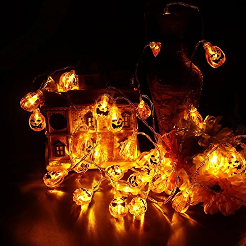 -. Title : Leagway Halloween String Lights, 20 LED Waterproof 3D Pumpkin Light Indoor Jack-O-Lantern Fairy Lights for Halloween Christmas Decorations, Battery Powered, Warm White