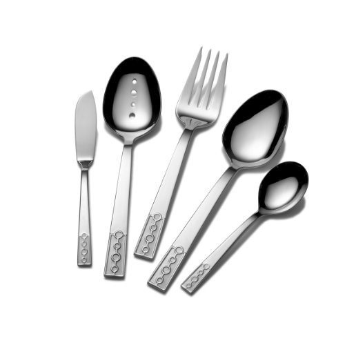 - This 5-piece set includes one each of: tablespoon, pierced tablespoon, cold meat fork, sugar spoon, and butter serving knife.