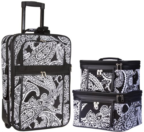 The luggage case is carry on size and easily fits in the overhead compartment of a plane. Never lose your boarding pass, ID, or other smaller items with its 2 front exterior zipper pockets. Its fashionable design makes it an ideal choice for transporting gear for dance teams and cheer squads, too!