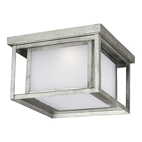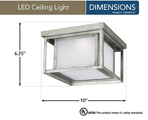 Sea Gull Lighting 7903991S-57 Hunnington LED Outdoor Flush Mount Ceiling Light with Etched Seeded Glass Panels, Weathered Pewter Finish